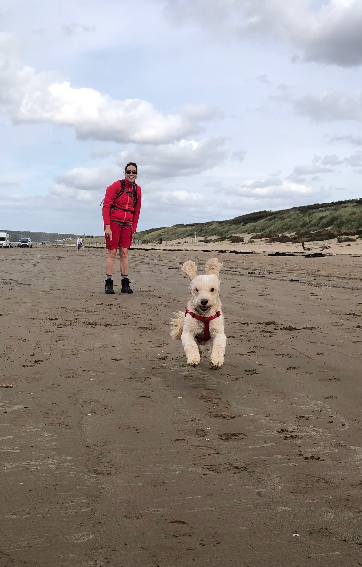 Walking back down Brean beach - with the wind well and truly in our faces