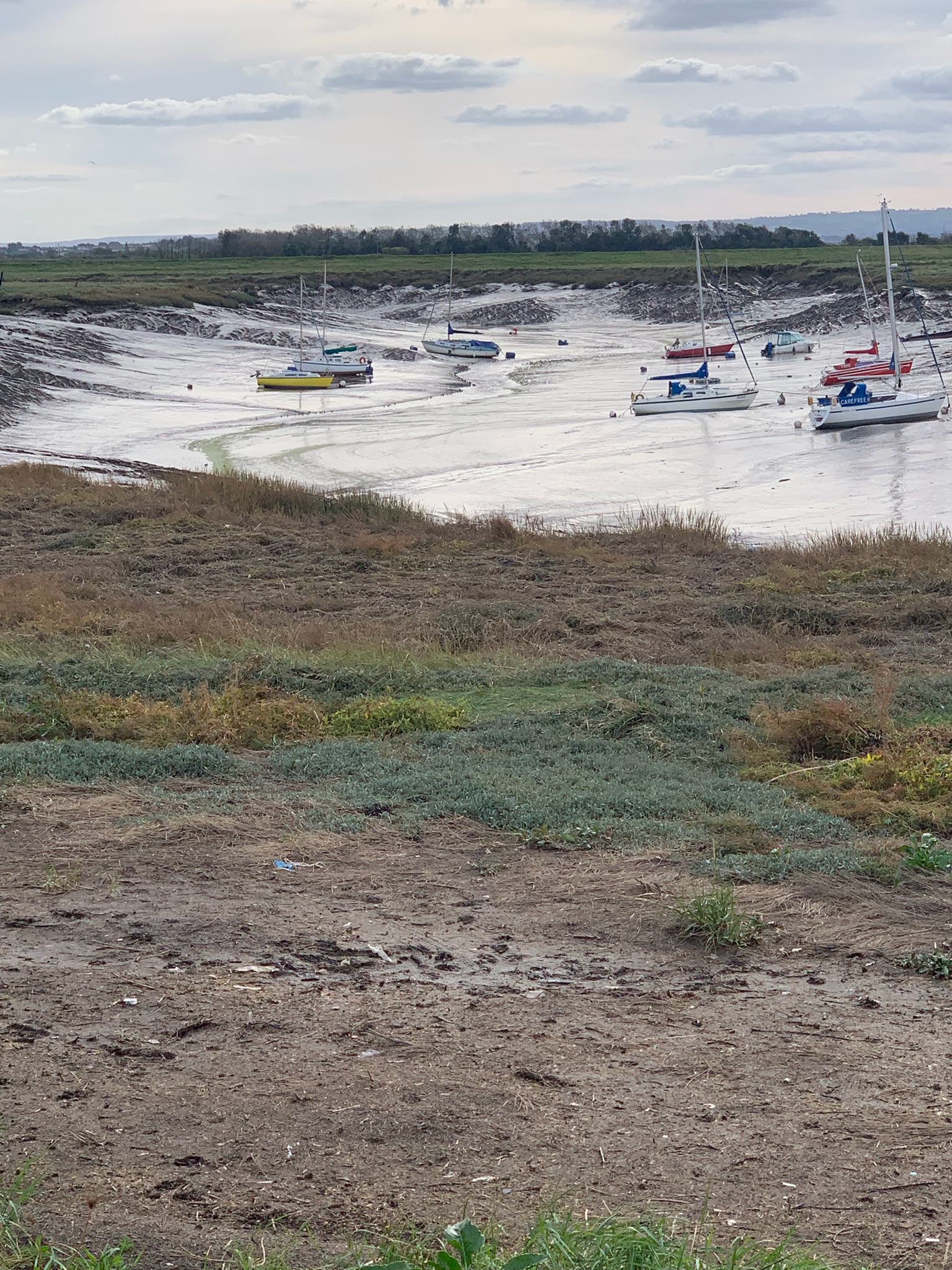 Turning inland towards Highbridge - low tide leaving the yachts high and dry