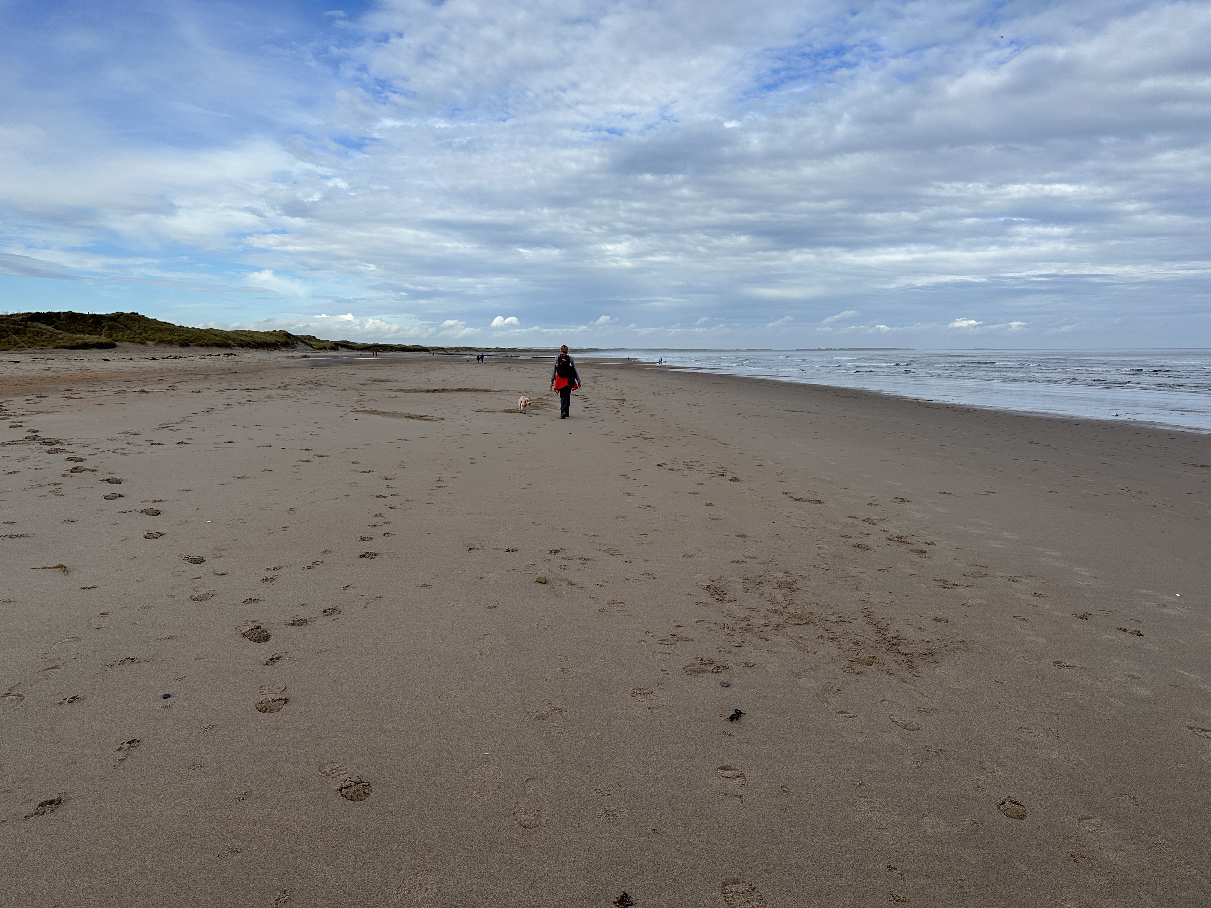 An 11.5 mile walk up the gorgeous Northumberland coast line. From Lynemouth, we had to walk up the road for a bit - at the time of our walk, the path through the dunes was closed for around the first mile. After two miles we reached Cresswell, where we stopped for breakfast, and from there it's a fabulous six miles up the beach - easy flat walking on the wet sand at anything other than high tide, and a wonderful bit of coast. The last two miles into Amble run through some dunes and then into the town. Our favourite day so far in the North East!
